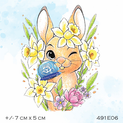 TAMPON LAPIN FLEURS, en caoutchouc naturel vulcanisé, monté sur mousse statique (Ez mount).