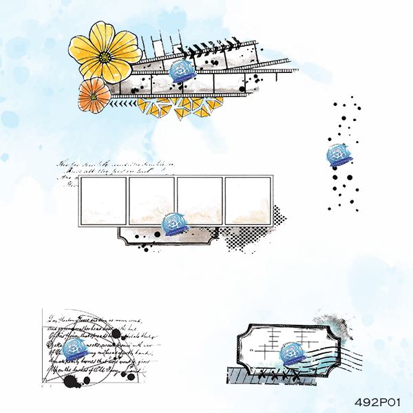 PLANCHE DE 5 TAMPONS FONDS, en caoutchouc naturel bleu vulcanisé, montée sur mousse statique (Ez mount).