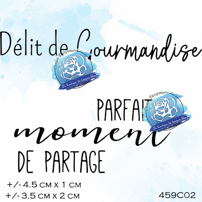 TAMPONS (2) DELIT DE GOURMANDISE, PARFAIT MOMENT DE PARTAGE, en caoutchouc naturel vulcanisé, monté sur mousse statique (Ez mount).