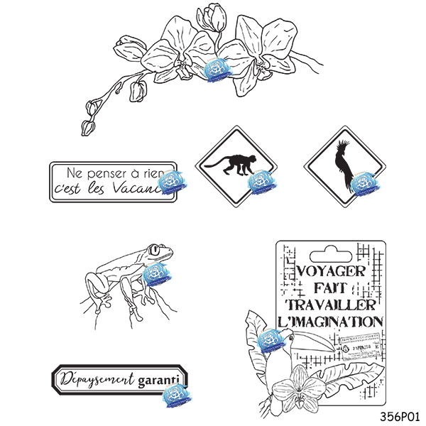 Orchidée, Panneau singe, Panneau Perroquet, Ne penser à rien, Dépaysement, Voyager, Grenouille